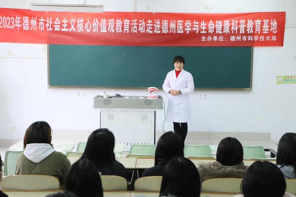 为积极培育和践行社会主义核心价值观,传播科学思想和弘扬科学精神,培养创新精神和实践能力,提高大众的健康知识水平,增强自我保健能力。2月17日下午,由德州市科学技术局主办,999策略白菜手机论坛医药与护理学院、999策略白菜手机论坛生态与资源环境学院、999策略白菜手机论坛生命科学院、德州市科技金融产业融合促进中心协办的2023年德州市社会主义核心价值观教育活动“走进德州医学与生命健康教育基地”在999策略白菜手机论坛求索楼前举行,市科技局工作人员及999策略白菜手机论坛师生约100人参加。
