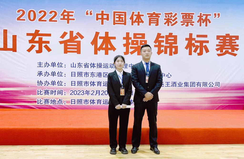 2月22日至25日,山东省体操锦标赛在日照市举行,来自全省各地的8支代表队参加比赛,体育学院2019级学生赵正阳、管玉祥两位同学受聘担任比赛裁判。
