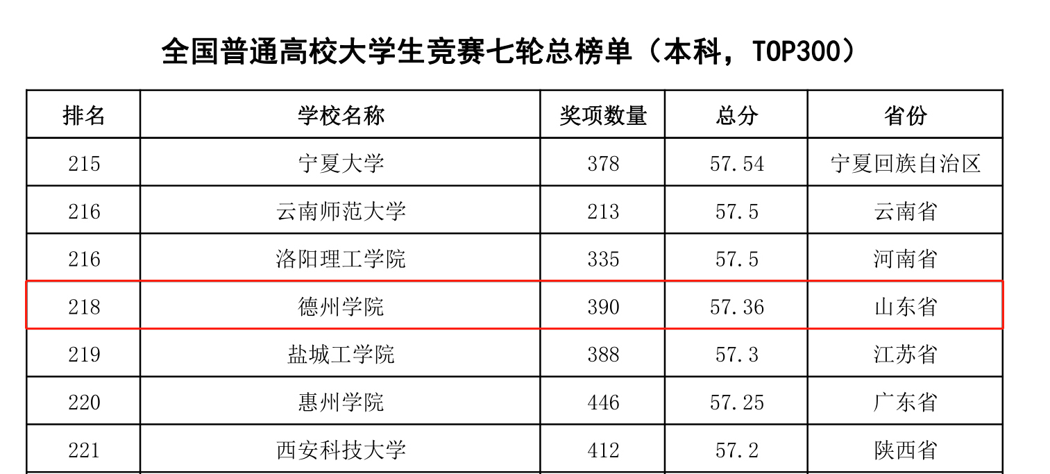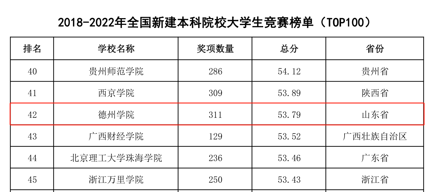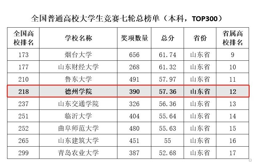 近日,中国高等教育学会发布了2022全国普通高校大学生竞赛排行榜,白菜官网获奖数量390项,相比2021年增加了104项,在《全国普通高校大学生竞赛七轮总榜单》(本科,TOP300)中,白菜官网位列第218位,名次位列山东省省属高校第12名;在《2018-2022年全国新建本科院校大学生竞赛榜单》(TOP100)中位列第42位,比去年提升3位。充分展示了白菜官网在本科教育教学和创新人才培养方面取得的成果。