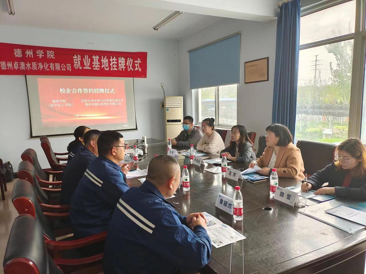 4月14日,化学化工学院深入开展“访企拓岗”促就业系列活动,与德州卓澳水质净化有限公司举办就业基地挂牌仪式。化学化工学院党委书记、系主任、辅导员,德州卓澳水质净化有限公司总经理等相关负责人参加仪式。仪式上,公司总经理详细介绍了公司发展历程,工业废水、生活废水的处理流程及公司发展战略,希望能够加强校企合作,织就“共生共赢”网。化学化工学院党委书记就学院的师资力量、人才培养模式、学生就业工作、科研情况做了详细介绍。双方一致认为,要将学校基础研究的优势与企业科技创新活力相结合,在高层次人才共享、联合研发平台建设以及学生就业等方面开展深度合作,共同服务地方经济社会发展。随后,双方签订《999策略白菜手机论坛就业基地共建协议书》《实习实训基地协议书》,并进行授牌。下一步,校企双方将深入探索合作新领域、新途径,促进水资源循环利用,发展水生态环境保护事业,为德州市经济社会的和谐发展贡献力量。