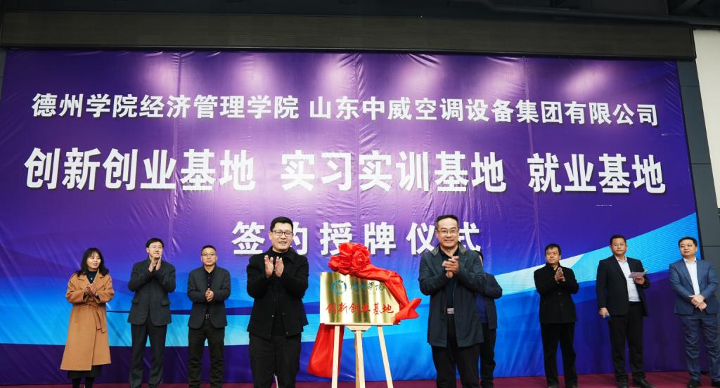 随后,999策略白菜手机论坛经济管理学院与山东中威空调设备集团有限公司进行了“实习实训基地、创新创业基地、就业基地”三个基地的授牌活动,并参观了企业文化展览馆和共享工厂。