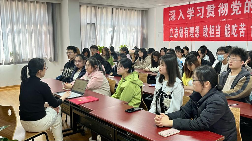 刘婧博士从自身求学、教学和科研等方面的经历出发,分享了自己的人生历程与感悟,并针对就业规划、素质提升和个人成长等方面给同学们提供了宝贵建议,她鼓励同学们坚定理想信念,勇于面对科研上的难题。在交流互动环节,与会师生就导师选择、研究选题、专业优势等方面展开热烈讨论,刘婧博士根据自身经历对同学们提出的问题进行解答,营造了共同学习、共同成长、共同进步的良好学术氛围。