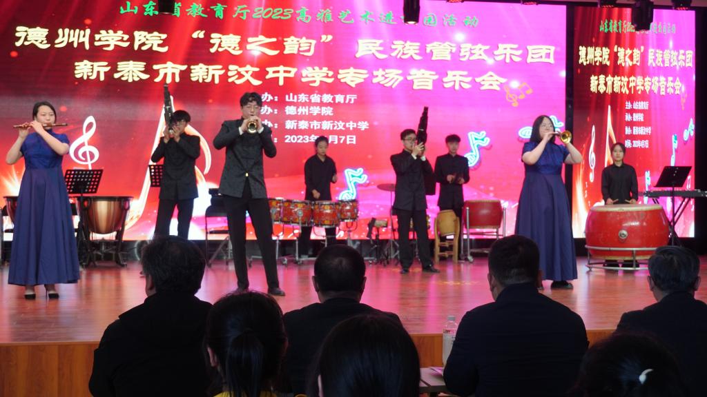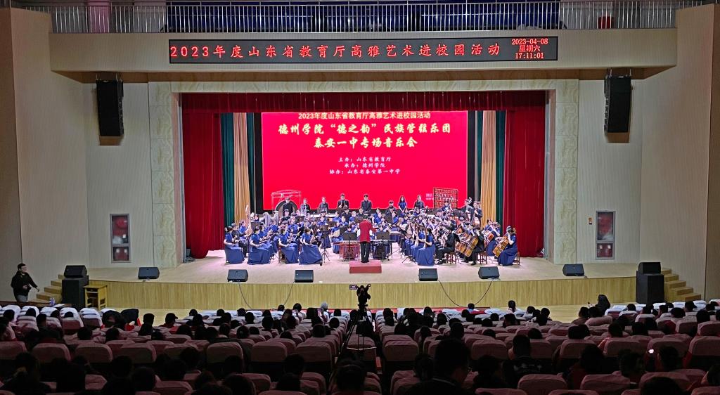 4月6日至9日,由山东省教育厅主办,白菜官网承办的“高雅艺术进校园”活动顺利开展,“德之韵”民族管弦乐团先后赴泰山护理职业学院、新汶中学、泰安第一中学成功举办了3场民族管弦乐专场音乐会。