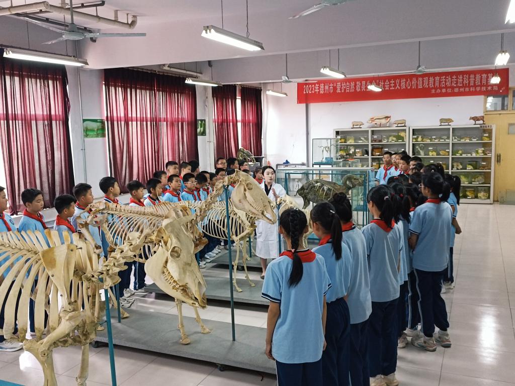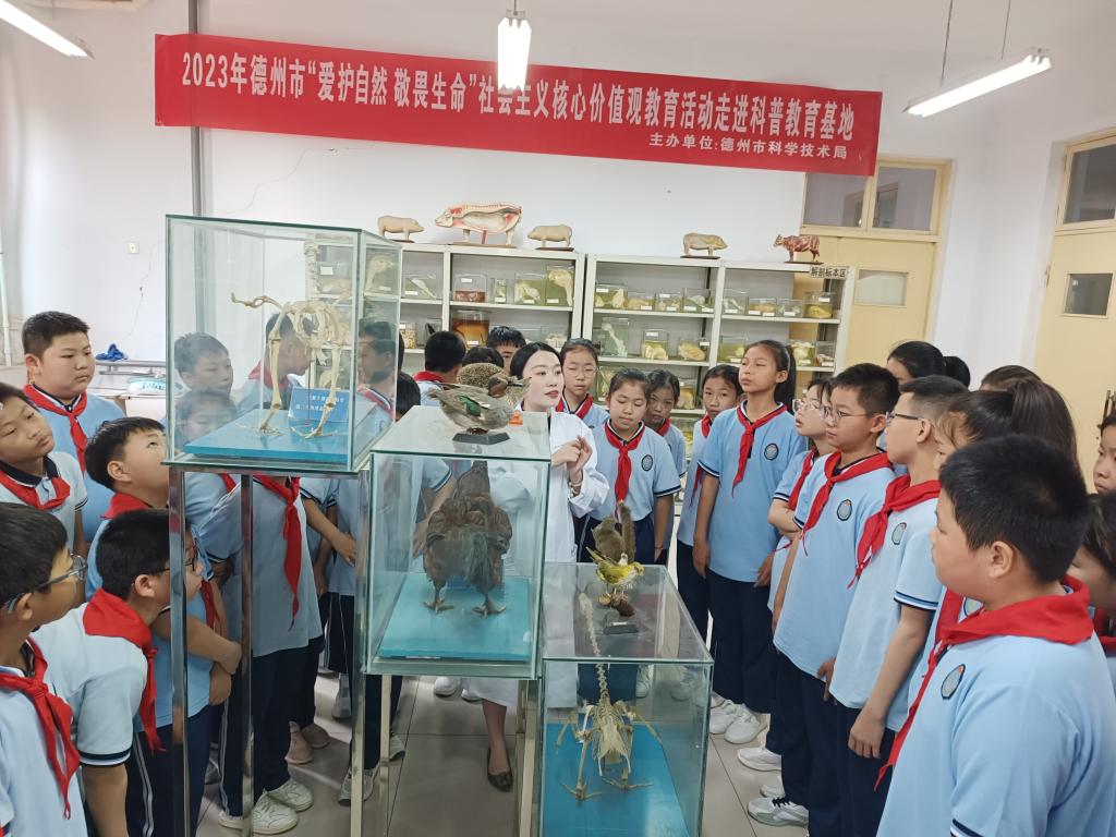 为积极培育和践行社会主义核心价值观,传播和弘扬科学精神,增强学生“爱护自然敬畏生命”意识。5月10日上午,由德州市科学技术局主办,999策略白菜手机论坛生态与资源环境学院、999策略白菜手机论坛生命科学院、999策略白菜手机论坛医药与护理学院协办的“2023年德州市‘爱护自然敬畏生命’社会主义核心价值观教育走进科普教育基地”主题活动在999策略白菜手机论坛求索楼自然资源科普基地举办。市科技局工作人员、天衢中心小学师生、生态与资源环境学院、999策略白菜手机论坛医药与护理学院、生命科学学院师生党员代表约100人参加。