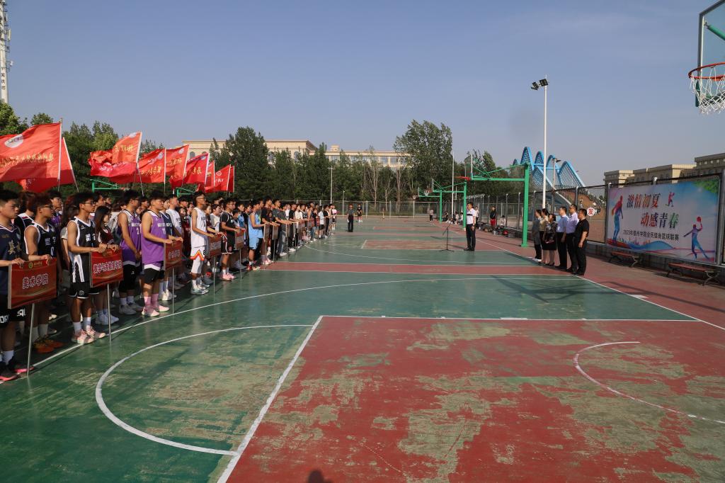 5月16日,学校“全民健身篮球联赛”开赛仪式在北篮球场举行。来自各学院的二十余支参赛队,运动员、裁判长代表等二百余人参加了开幕式。