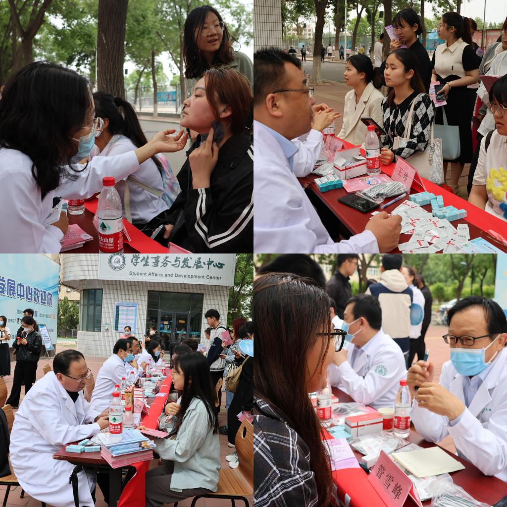 讲座后,多名专家现场开展义诊活动,师生们带着生活中的种种皮肤相关的问题,向皮肤科专家团队请教,义诊专家认真聆听、仔细检查,为师生答疑解惑,并提供专业、科学的治疗建议。现场共发放宣传资料一千余份,气氛热烈。