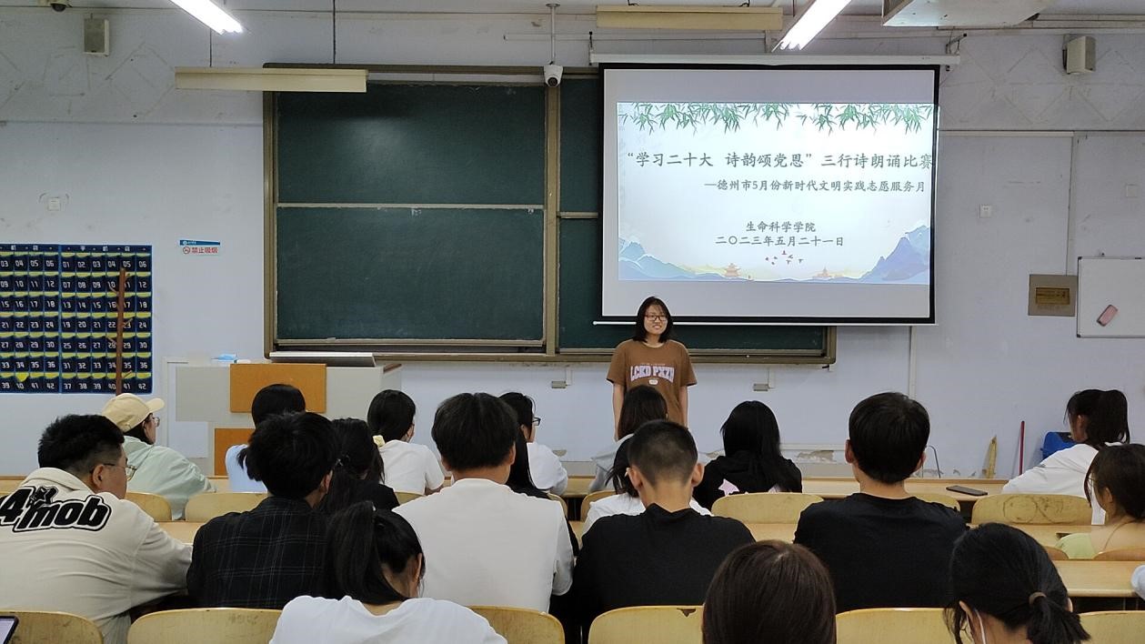 4月10日,为全面贯彻落实党的二十大精神,扎实做好我院心理健康教育工作,全面提升心理育人质量,生命科学学院于求实楼0118教室开展“致可爱的我和你”三行诗朗诵活动。