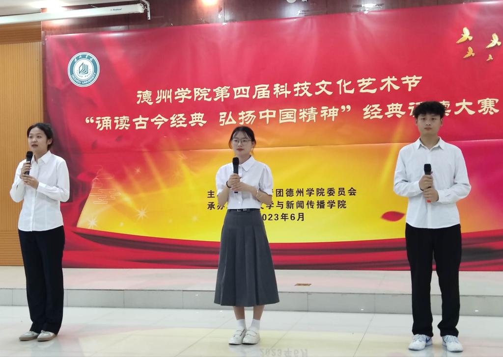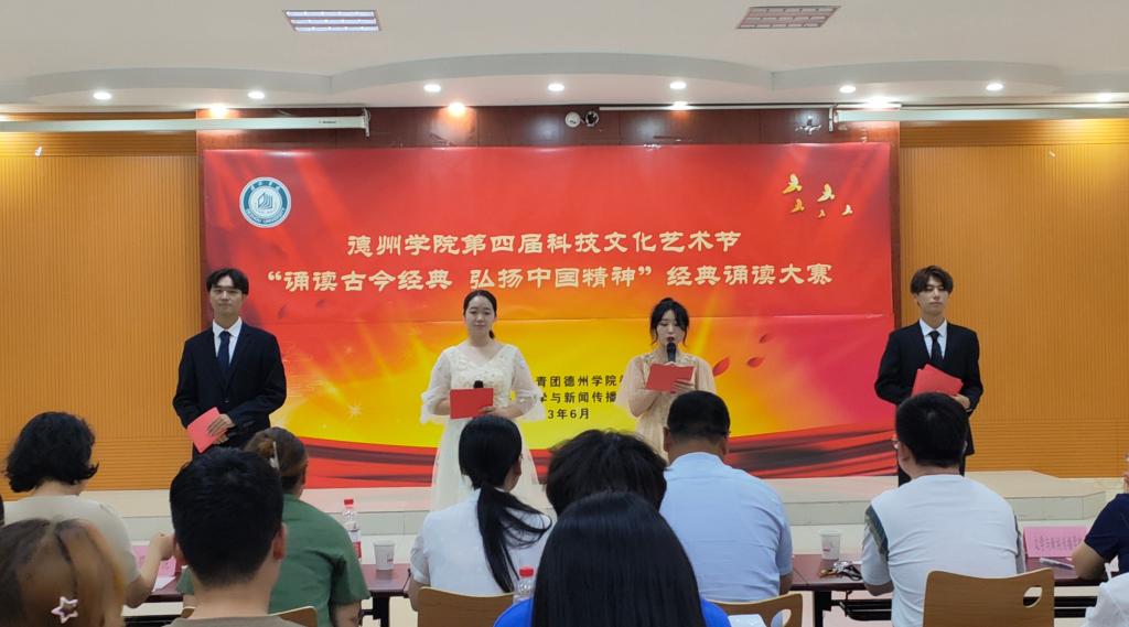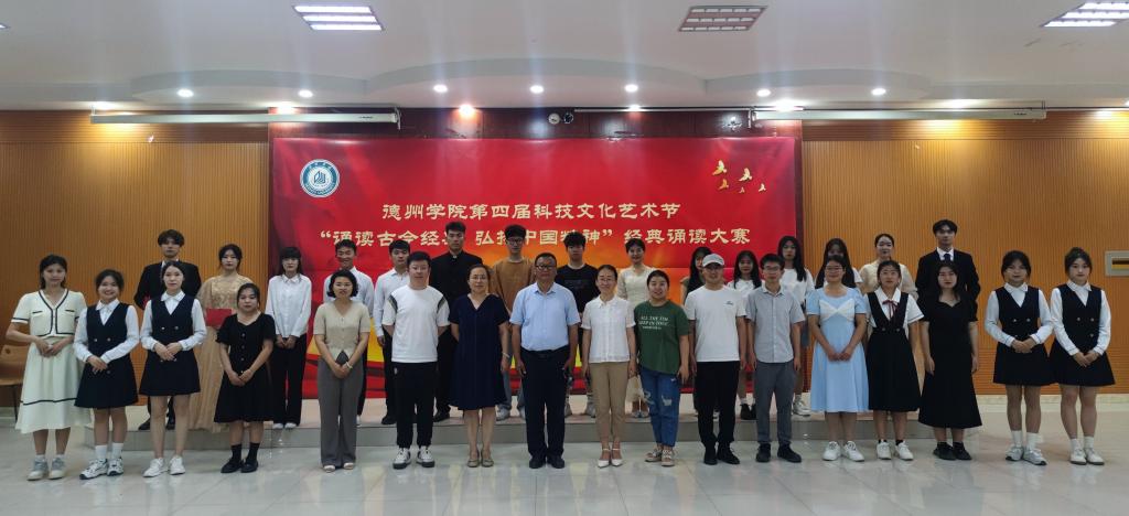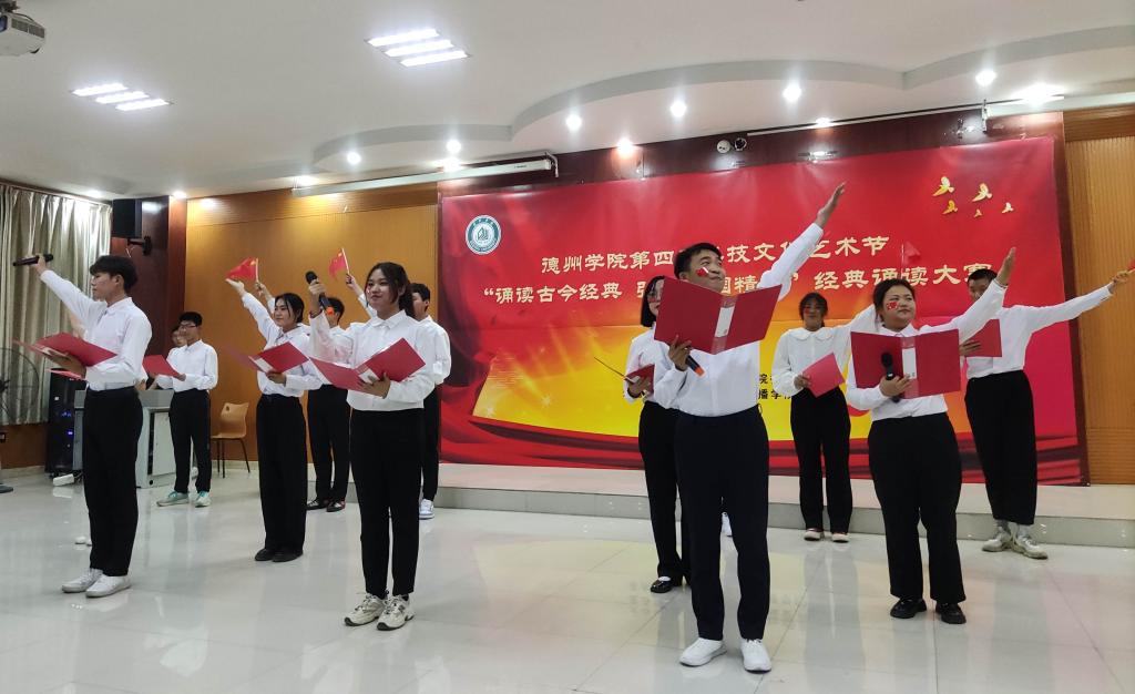本次经典诵读大赛由校团委主办,文学与新闻传播学院承办,是白菜官网第四届科技文化艺术节的一项活动。德院师生从诗歌中学习中华文化,从历史中汲取精神力量,砥砺前行再出发。校团委相关负责人、文学与新闻传播学院班子成员、参演学院的师生代表参加了本次活动。