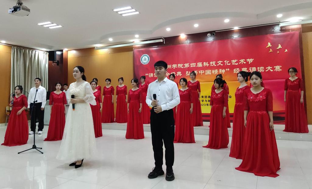 为贯彻落实习近平总书记在文化传承发展座谈会上的重要讲话精神,引领青年学生亲近中华经典,传承弘扬中华优秀文化,激励青年学生坚定文化自信,坚定理想信念,在全校形成学习、传承中华文化的浓厚氛围,6月15日晚,学校在博文楼报告厅举办“诵读古今经典 弘扬中国精神”经典诵读大赛。