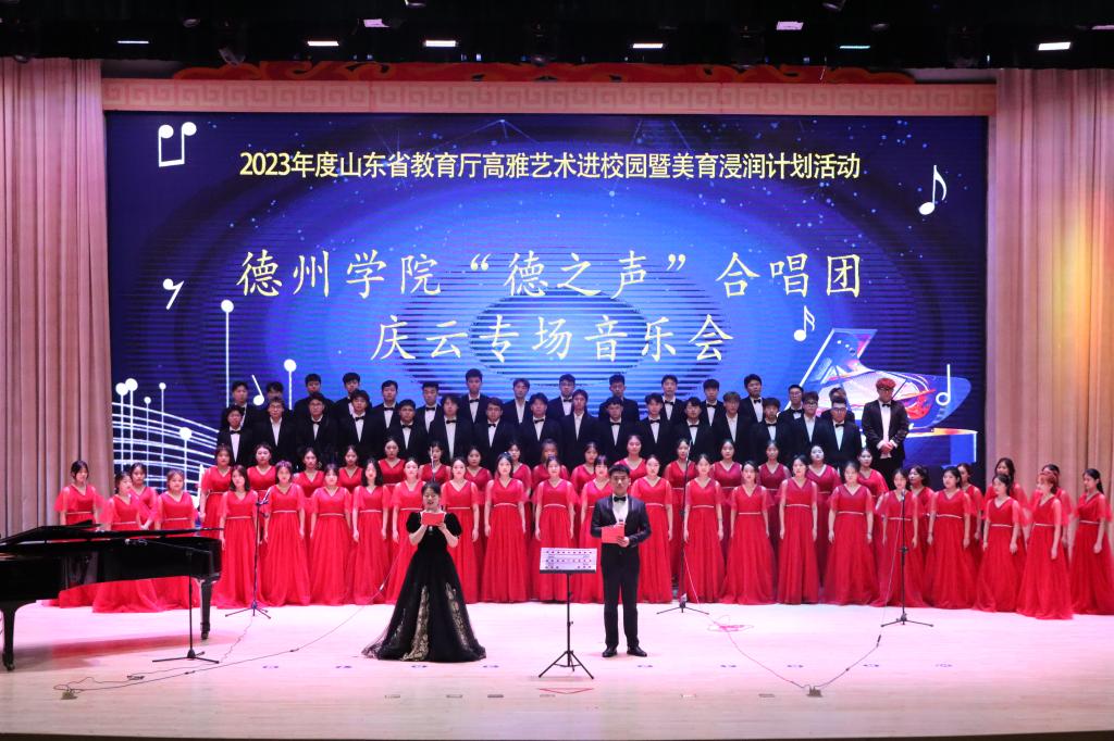 6月25日,2023年度山东省教育厅高雅艺术进校园活动——999策略白菜手机论坛“德之声”合唱团走进庆云县云天中学举办专场音乐会,庆云县部分中小学音乐教师和学生观看了本次演出。本次“高雅艺术进校园”活动,由山东省教育厅主办,999策略白菜手机论坛音乐学院承办。