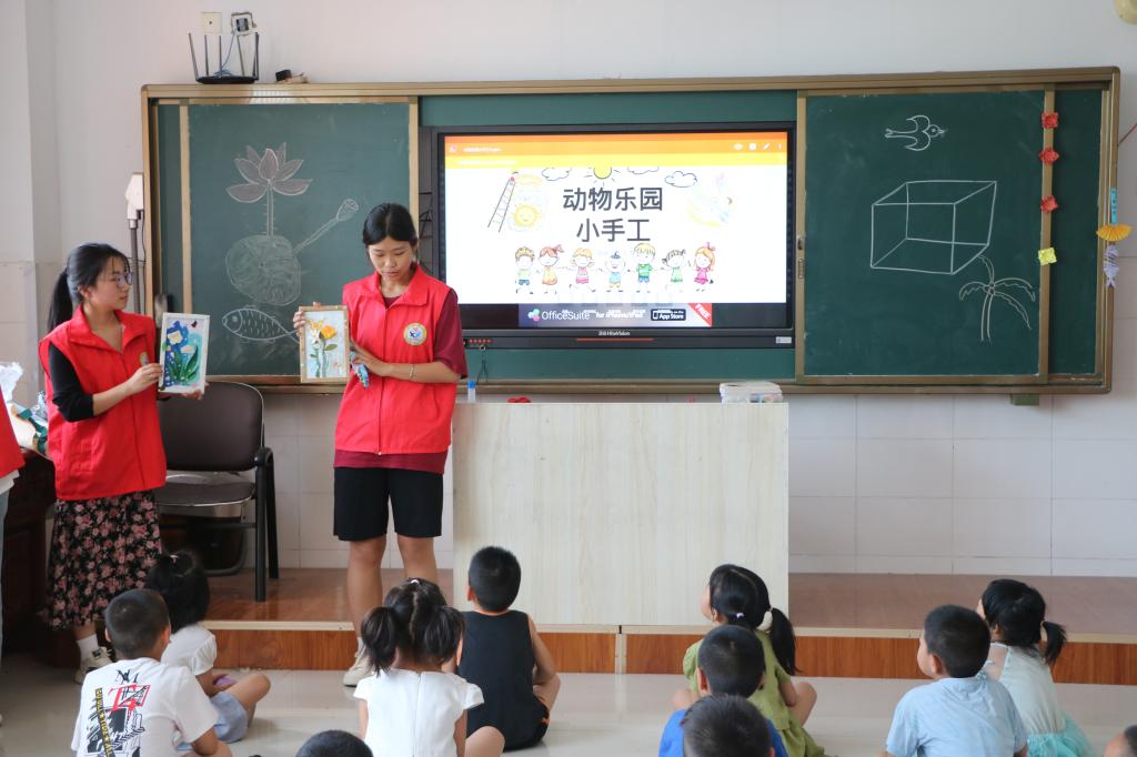 志愿服务队前往希望小学,本着感恩社会、回报社会、服务社会的宗旨,发挥队员的专长优势,帮助对接当地的小学生进行课业辅导、安全教育、推广普通话、海姆立克急救法科普等。结合手工制作,激发孩子的学习兴趣,帮助学生巩固基础知识的同时,拓宽他们的视野。用德院青年积极向上的精神状态感染他们,用面对面的温情、手把手的相扶和心贴心的交流,助力儿童成长。