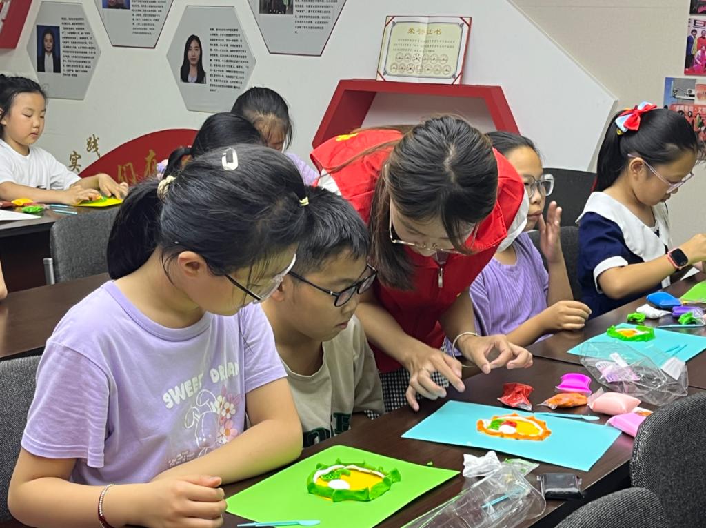 团队志愿者以教材中的重点结构图及实验为基础,借助图解详细讲解了动物细胞和植物细胞的结构,带领小朋友们打开微观世界的大门。小朋友们利用橡皮泥、超轻粘土、彩色卡纸等日常生活中常见的材料,充分发挥创意,踊跃参与模型制作,细致入微地勾勒出生物体的各个结构,精美的构图、鲜艳的色彩,让人不由地对微观世界的生命之美肃然起敬。