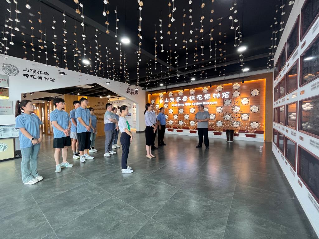 随后,夏津县人民政府副县长郑保根与校团委负责人共同为大学生教育实践基地揭牌。仪式后,师生一行先后到县教育和体育局、夏津县小松薯食品有限公司、齐鲁棉花博物馆、苏留庄镇平安湖村、夏津县职业中等专业学校实地参观调研并召开座谈会,双方就深化校地合作、推进乡村教育振兴、开展大学生暑期“三下乡”、强化实践基地共建等方面深入交流。
