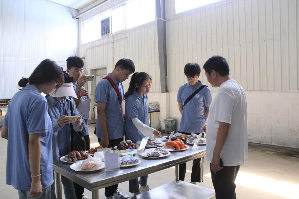 团队成员结合当地红薯种植产业现状与夏津小松薯食品有限公司经理赵华锐及村民们进行了深入交流,参观了合作社的生产车间、储存地窖,直播场地,深入学习了红薯种植、管理、贮藏以及收割等步骤,观摩了当地薯苗培育、种植储存、加工销售、物流运输的产业链条。