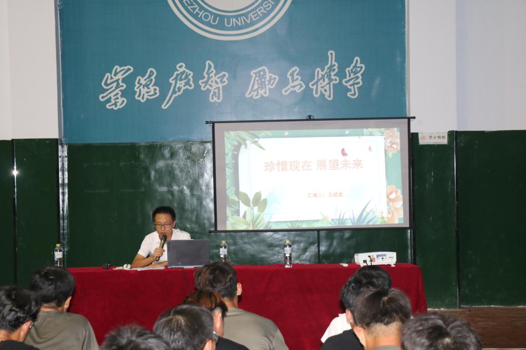 王老师以“珍惜现在 展望未来”为题,先为大一新生分享了自己在校的学习、工作情况,他表示同学们一定要确立目标,发掘潜能,借助国家大力发展体育健康产业的良好环境,在体育健康教育领域发挥所长、干出成绩,同时,要树立正确职业观,在大学生涯规划中要根据自己的实际情况,不要好高骛远,要做到脚踏实地,一步一个脚印去完善自己的专业知识,把理论与实际相结合,为就业做好准备。