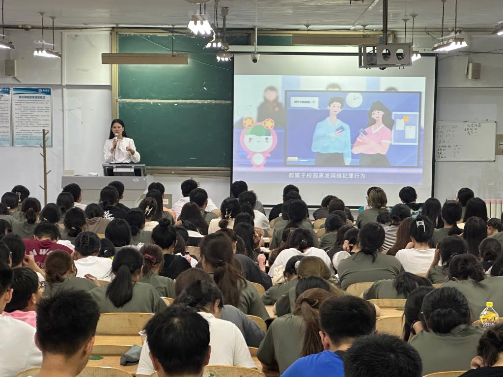 各学院组织学生观看警示教育片《网络空间不是法外之地—大学生网络信息安全教育专题片》,紧紧围绕防范非法校园贷、防范电信诈骗等安全问题,以案释例,以例施教,引导学生提升网络安全素养,树立安全稳定的红线意识和底线思维,理性看待媒介中的信息,学会信息甄别;教育学生正确地制作、使用和传播媒介产品,自觉维护网络安全,努力成为网络安全的参与者、守护者、贡献者。
