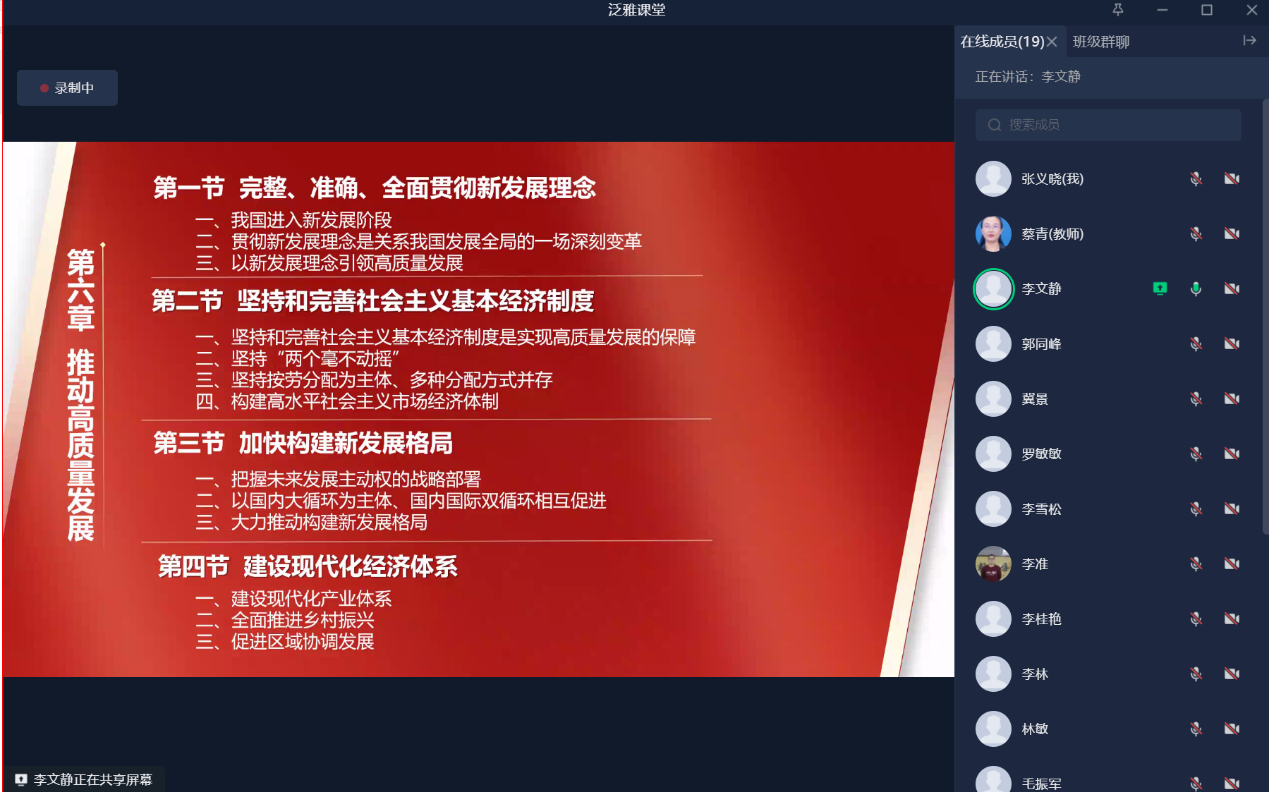 首先,999策略白菜手机论坛马克思主义学院教师李文静围绕“推动高质量发展”进行说课。李老师从课程导入、基本内容、案例分析等方面,系统清晰地展示了教学的设计思路与课堂把握,运用创新思维和辩证思维,抓住关键、找准重点、阐明规律,创新了课堂教学。