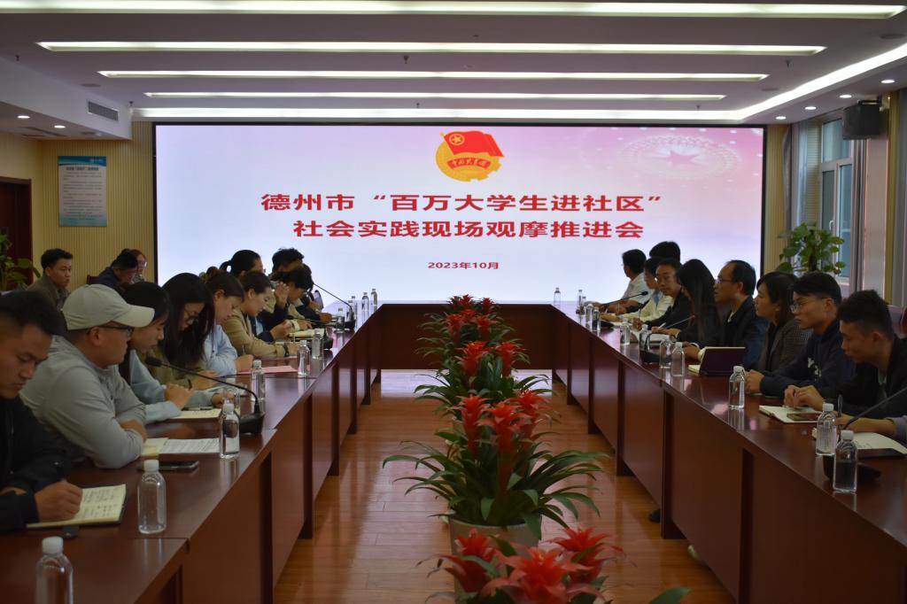 10月20日,德州市“百万大学生进社区”现场观摩暨工作推进会在白菜官网召开。团市委副书记曲元康、部分县市区团委负责人、市属高校团委书记、社区负责人及白菜官网部分团干部参加会议。